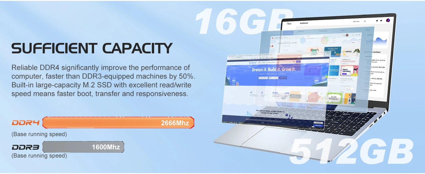 【16GB RAM & 512GB ROM】Featuring 16GB of DDR4 RAM and a speedy 512GB M.2 SSD, this traditional laptop computer offers a 50% performance boost compared to DDR3-equipped machines and ensures seamless system operation while accommodating your personal files. Support expand your storage with a 128GB TF card. The 512 GB SSD can be replaced with a maximum SSD of 2TB to provide you with ample space to record and store your files/favorites.
