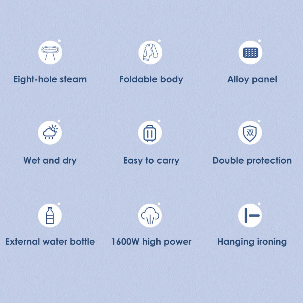 1. One machine with multiple functions: 2 in 1 hanging ironing and flat ironing, this hand-held ironing machine is a good helper for ironing clothes, and can also be used as a small humidifier.