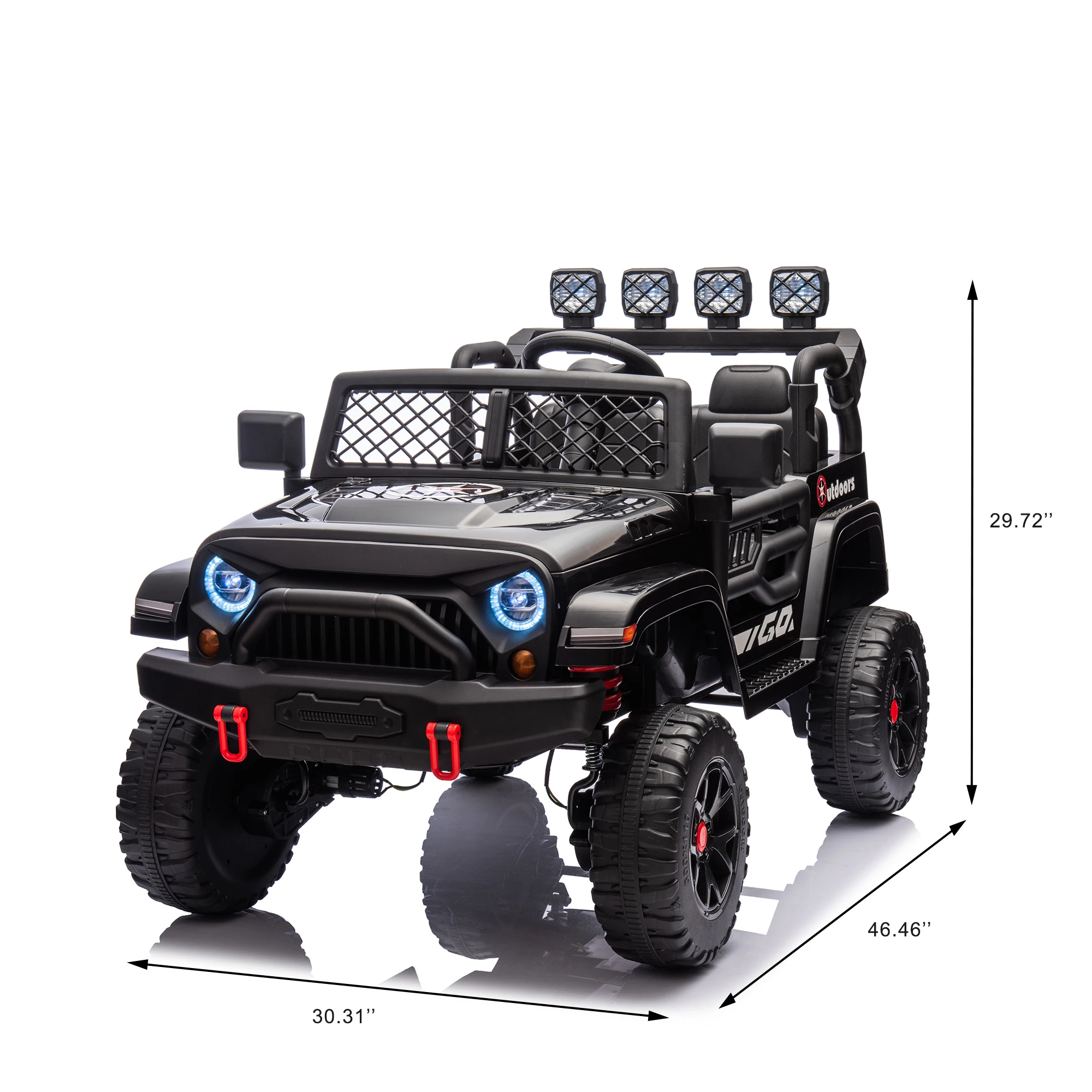 [24V 4WD Power Vehicles Wheels]: This 24V electric car equipped with 4pcs powerful #550 motors and big wheels with strong rear spring suspension, which appears to drive for any occasions. The max speed up to 3.875mph, being 4×4 makes it really good for dirt ridding.
