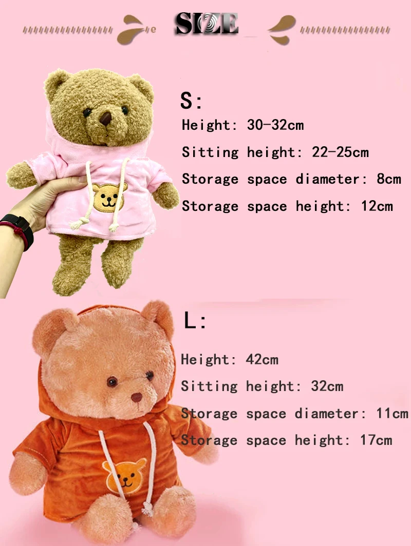 5 Styles Plush Bear Hidden Safes Storage Safe Compartment Sight Secret Creative Gift for Money Jewelry Kids Removable Cap Doll