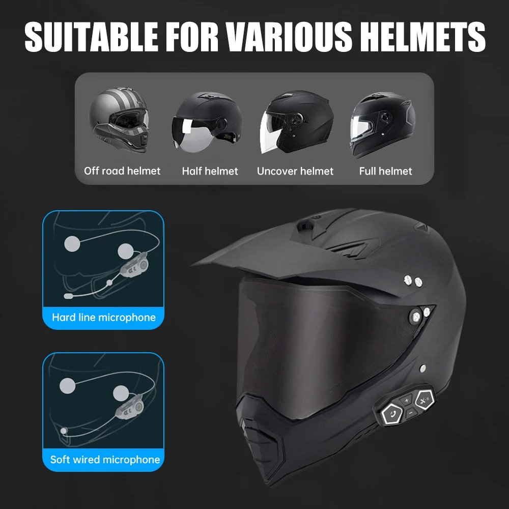 Compatible with a variety of helmets: The X11 Helmet Bluetooth speaker comes with two microphones – a push-button microphone for a full-face helmet and a boom microphone for an open helmet.