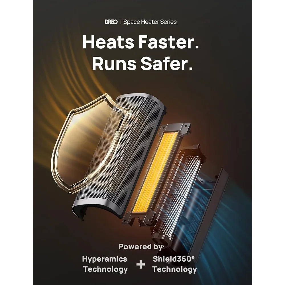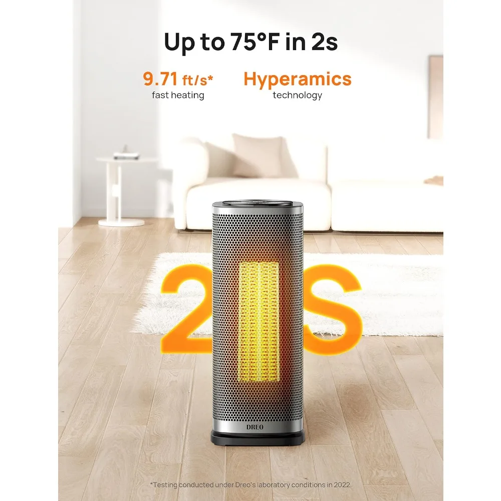 - Faster Heat Than Ever: Powerful 1500W PTC ceramic heating with Dreo’s Hyperamics Technology allows this space heater to heat up in seconds, reaching your desired temperature immediately, letting you feel fast, balmy heat straight away. This portable heater transforms your cold room to a hot spot with high-speed heating at up to 9.77 ft/s, Heating Coverage: up to 200 sq.ft.